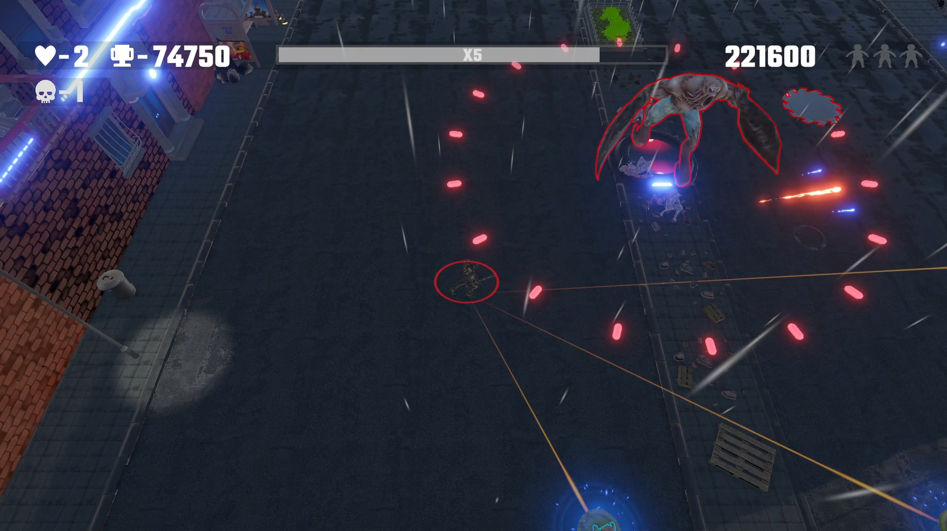 DEATHATRON is a classic, wave-based, twin-stick shooter. Basically, kill everything on the screen to progress to the next wave... but remember the following points:
